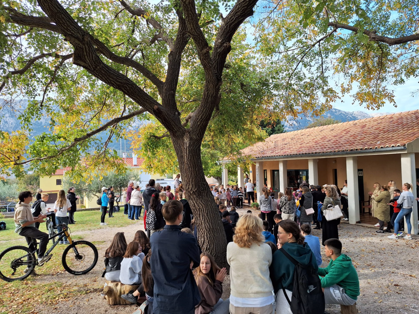 Učenici naše škole su i ove godine s radošću obilježili Dane zahvalnosti za plodove zemlje u kompleksu sv. Lucije U veselom i toplom ozračju, zajedno smo zahvalili Bogu na svim darovima kojima nas svakodnevno obdaruju priroda i ljudske ruke. Posebnu notu događaju dale su mame, bake i poneki tata koji su, s mnogo truda i ljubavi, pripremili razne krušne proizvode – mirisne pogače, kiflice, perece i kolače. Stolovi su bili prepuni domaćih delicija koje su svi s veseljem kušali nakon programa. Priredbu su priredili naši učenici, koji su kroz recitacije i pjesmu podsjetili sve prisutne na važnost zahvalnosti, zajedništva i dijeljenja. Nakon priredbe, uslijedio je blagoslov plodova zemlje, kojim smo simbolično zahvalili na svemu što primamo. Druženje se nastavilo na livadi uz štafetne igre i veselo nadmetanje učenika svih razreda. Smijeh i radost ispunili su cijeli dan, a svi su se složili da ovakvi trenuci zajedništva čine našu školu pravom obitelji.