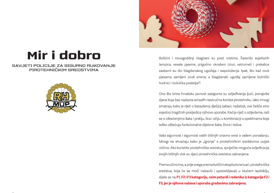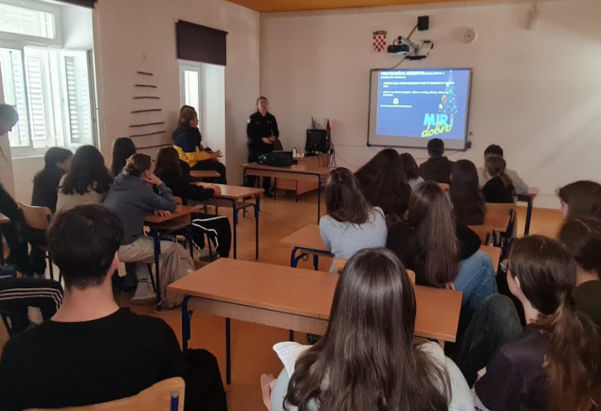 Dana 15. prosinca 2025. našu je školu posjetila policijska službenica Irena Paula Ištok iz Policijske postaje Krk kako bi za učenike održala predavanje u sklopu preventivne akcije „Mir i dobro“. „Mir i dobro” je preventivna akcija organizirana od strane Ministarstva unutarnjih poslova Republike Hrvatske i provodi se od 1993. godine. Cilj ove akcije je sprječavanje nezakonite uporabe oružja, pirotehničkih i drugih eksplozivnih sredstava u vrijeme božićnih i novogodišnjih blagdana te održavanje povoljnog stanja javnog reda i mira i opće sigurnosti građana. Predavanju su prisustvovali učenici od 6. do 8. razreda, a tema predavanja bila je korištenje pirotehničkih sredstava i posljedice istog. Učenici su imali priliku čuti važne informacije o pirotehničkim sredstvima, zakonskim odredbama te mogućim neželjenim posljedicama korištenja tih sredstava. U nastavku prilažemo letak i brošuru sa svim važnim informacijama o ovoj temi.