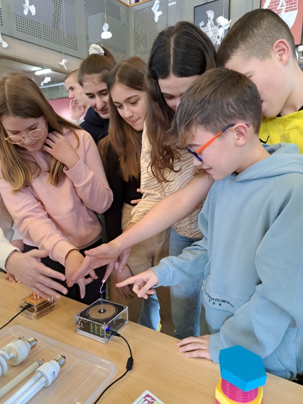 Učenicima je prezentiran rad Teslinog transformatora koji su imali prilike isprobati neonskim