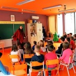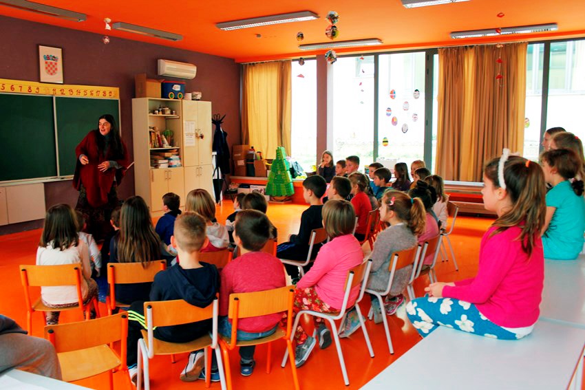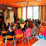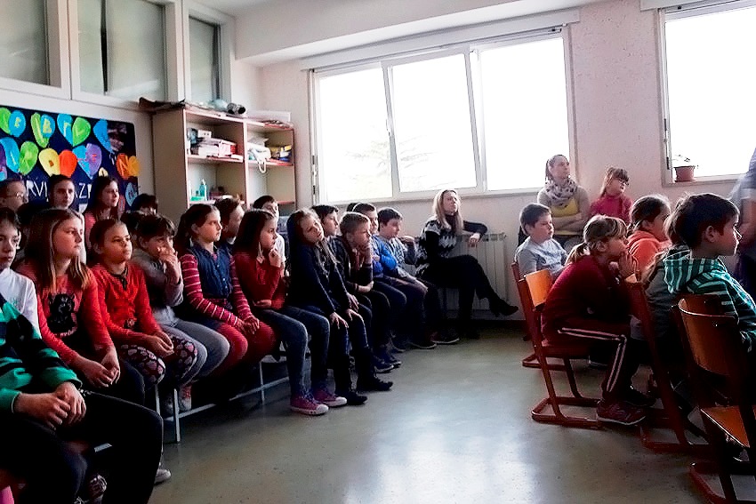 Jedini problem oko organizacije pripovijedanja u Krku bila je brojnost najmlađih krčkih osnovnoškolaca koje je trebalo smjestiti u učionicu dobre akustike. Naime, našoj  pripovjedačici je trebala učionica  u kojoj nema puno ometanja različitim zvukovima dok pripovijeda. Naposljetku smo se uspjeli smjestiti i pripovijedanje je moglo započeti.
