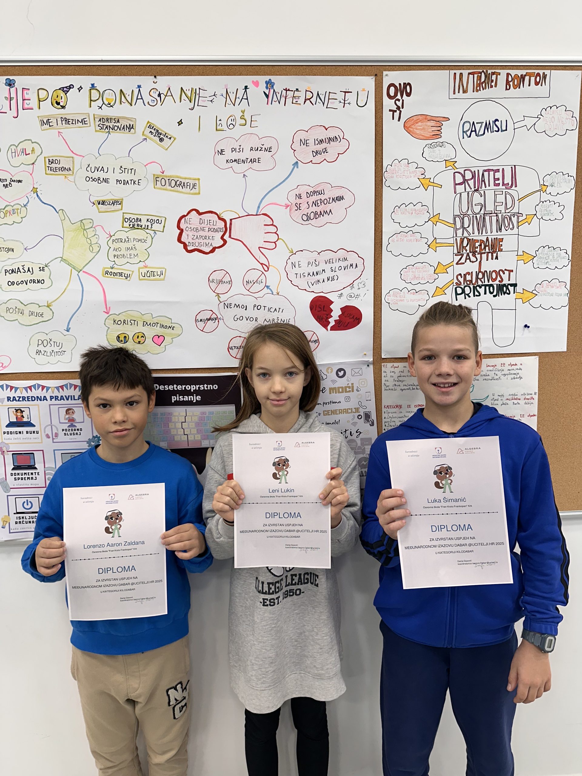 Učenici 5.razreda u kategoriji KiloDabar – Luka Šimanić, Lorenzo Aaron Zaldana te učenica 6.razreda – Leni Lukin koji su svojim plasmanom uvršteni u 10% najboljih u Hrvatskoj.