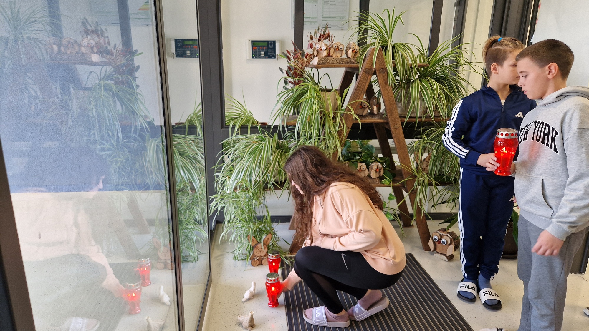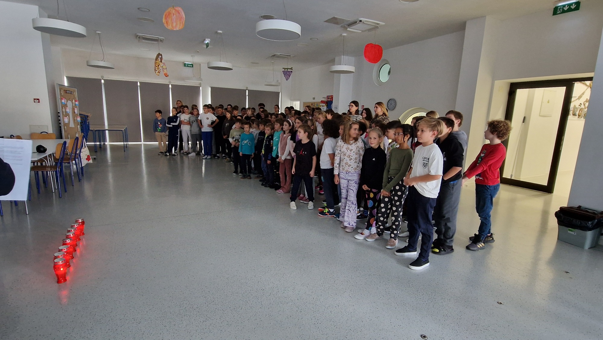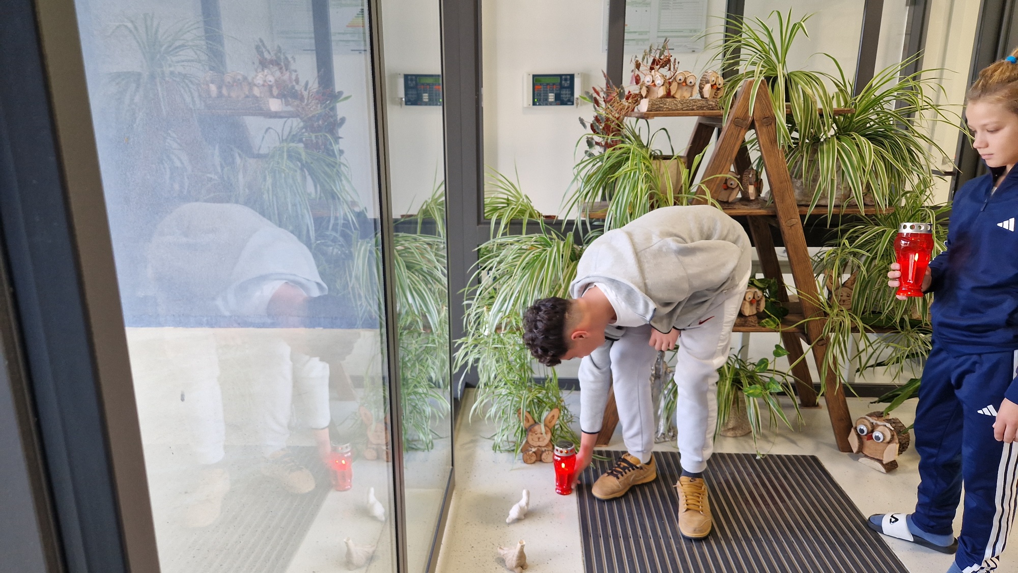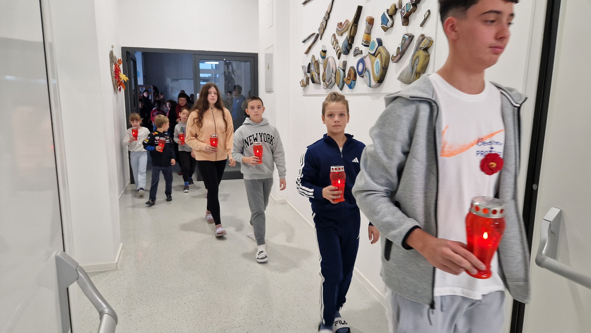 Na kraju programa predstavnik svakog razreda postavio je upaljen lumin na ulazu u školu.