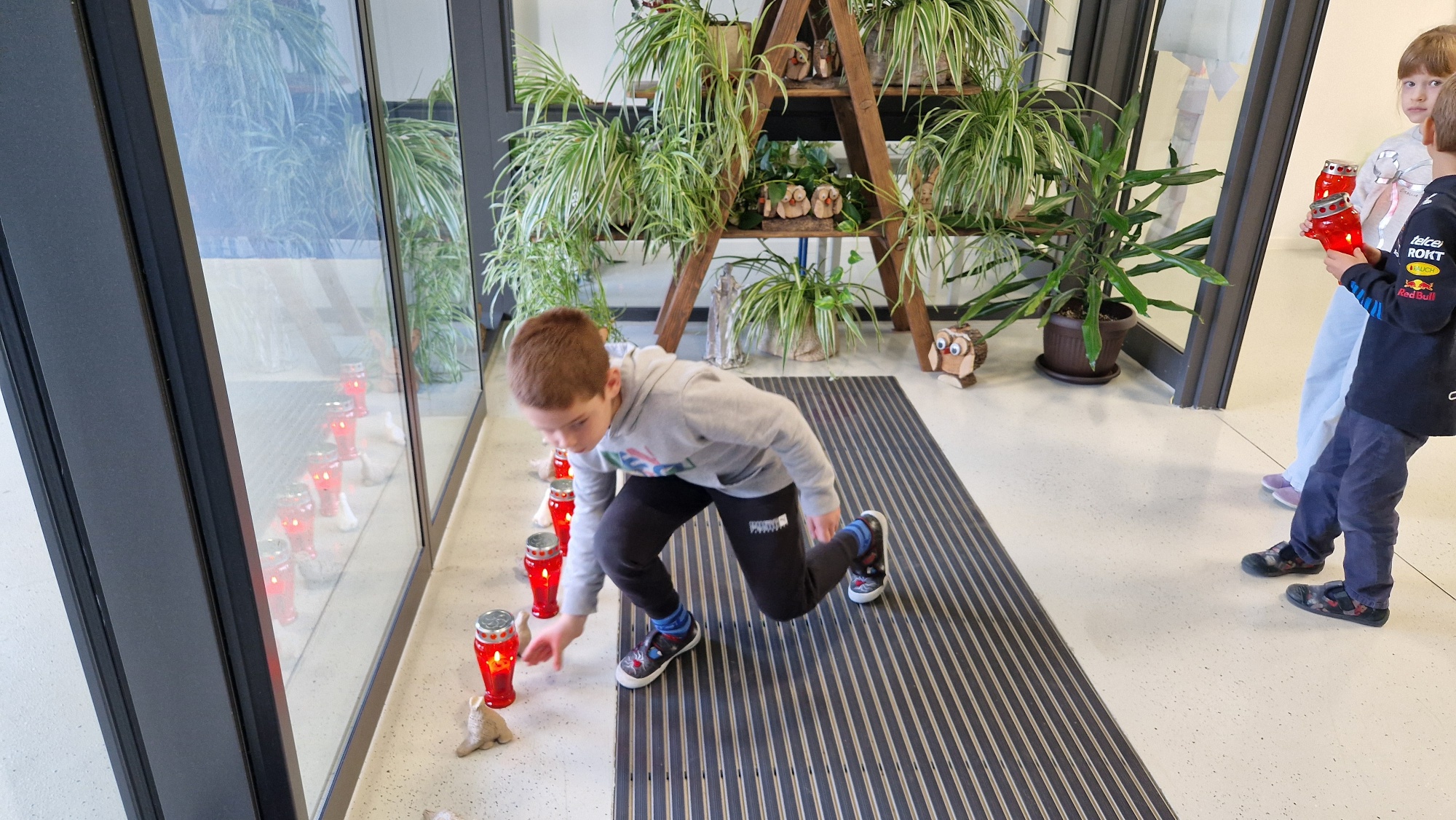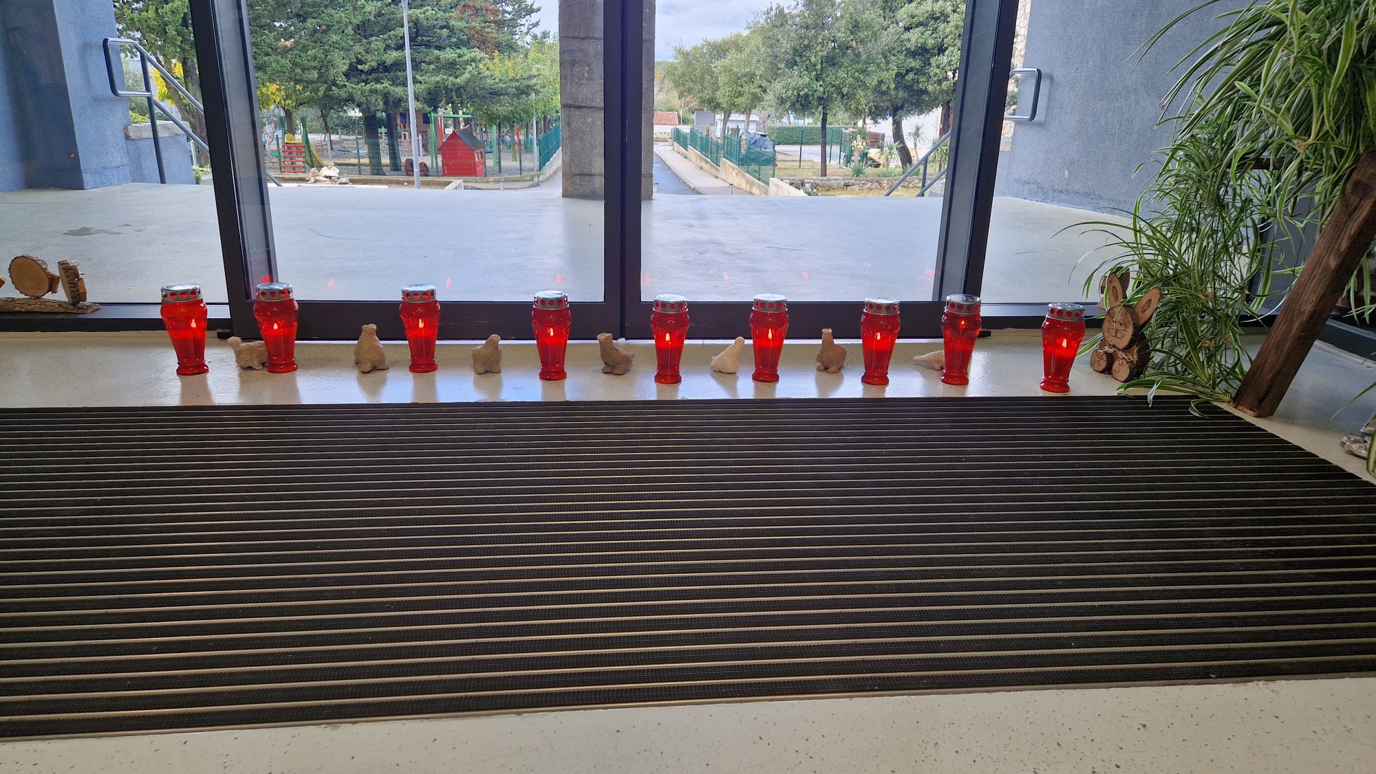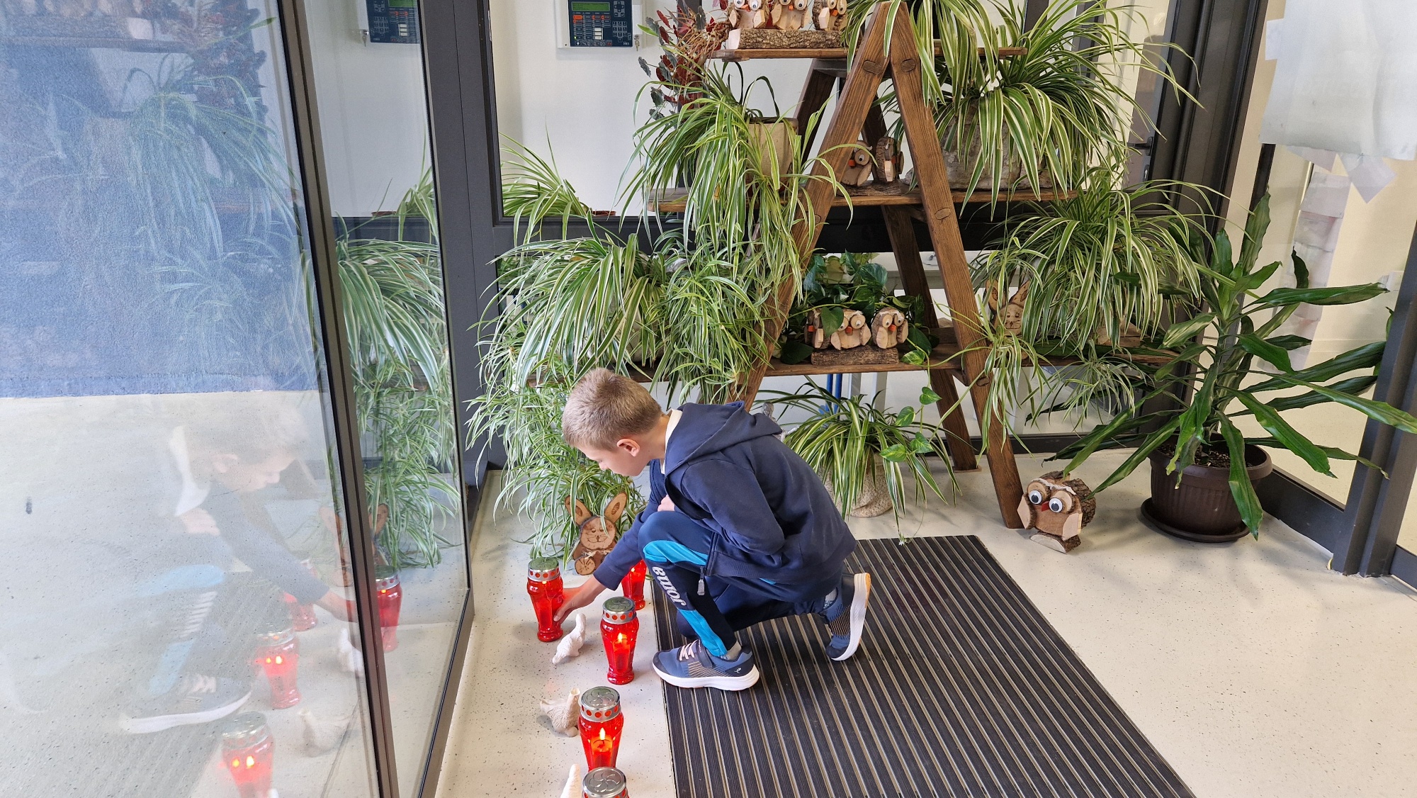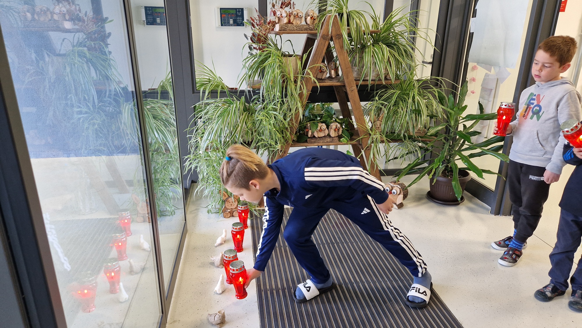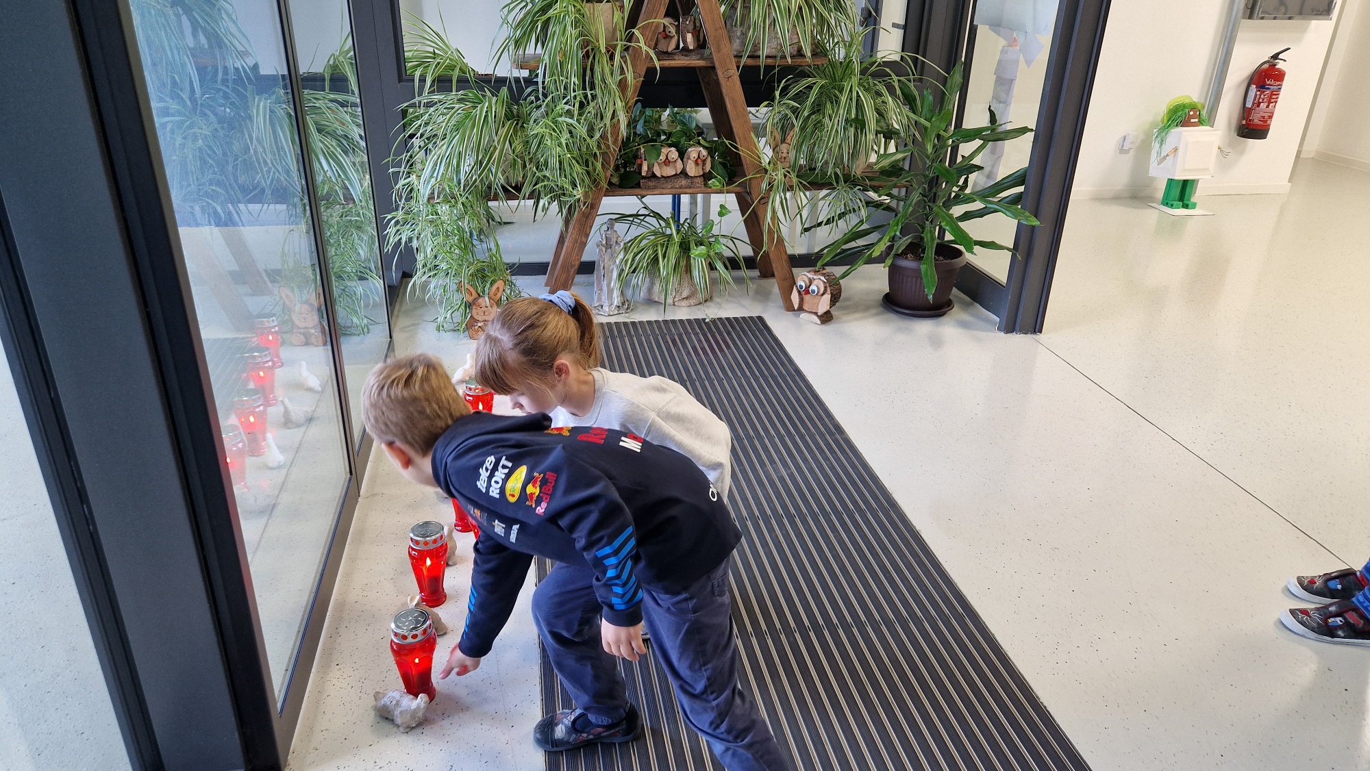 Na kraju programa predstavnik svakog razreda postavio je upaljen lumin na ulazu u školu.