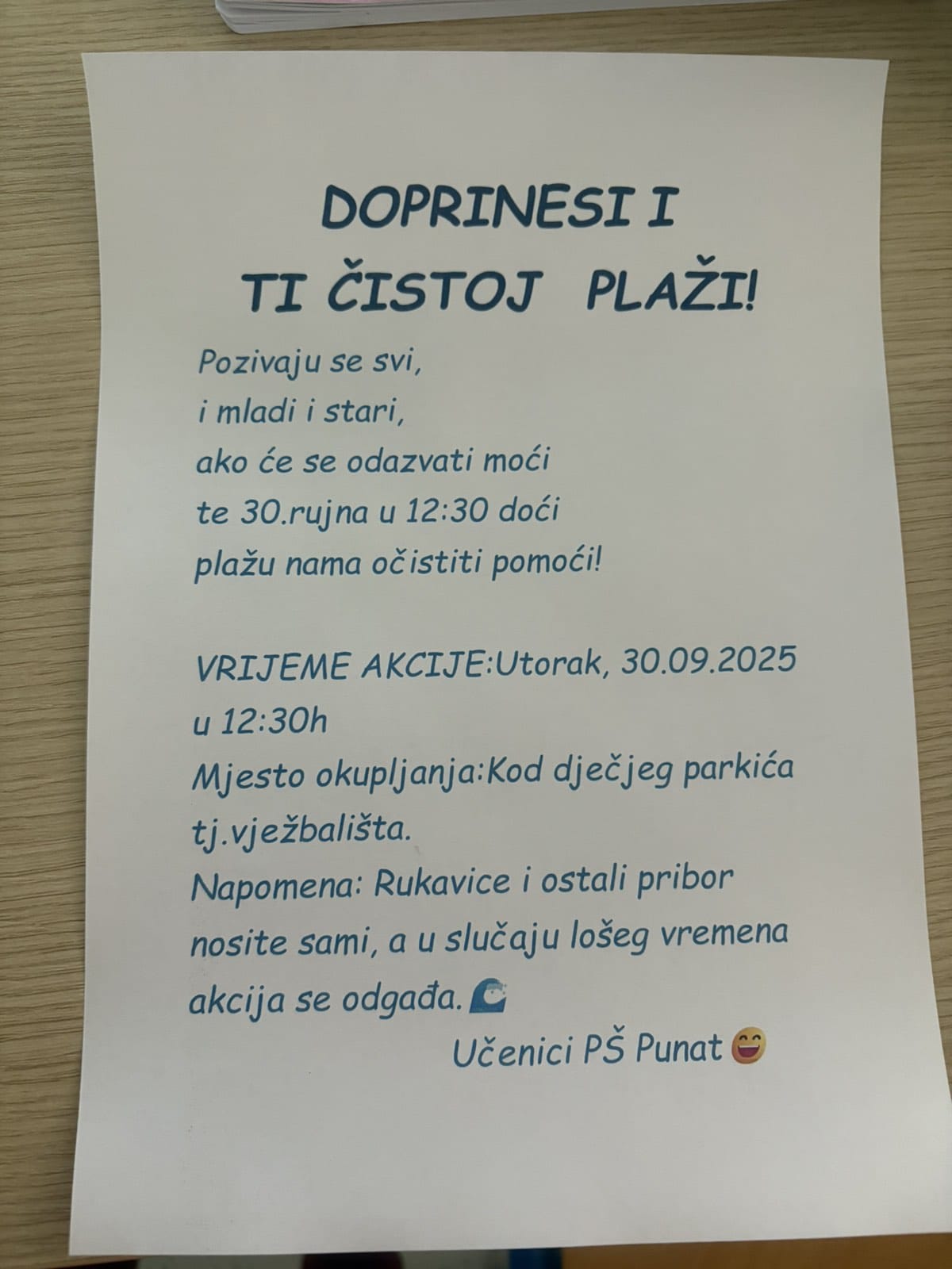 Kako ni mještani Punta ne bi ostali zakinuti za ovu informaciju, izradili smo letke, polijepili ih i pozvali da nam se pridruže u akciji prikupljanja otpada.
