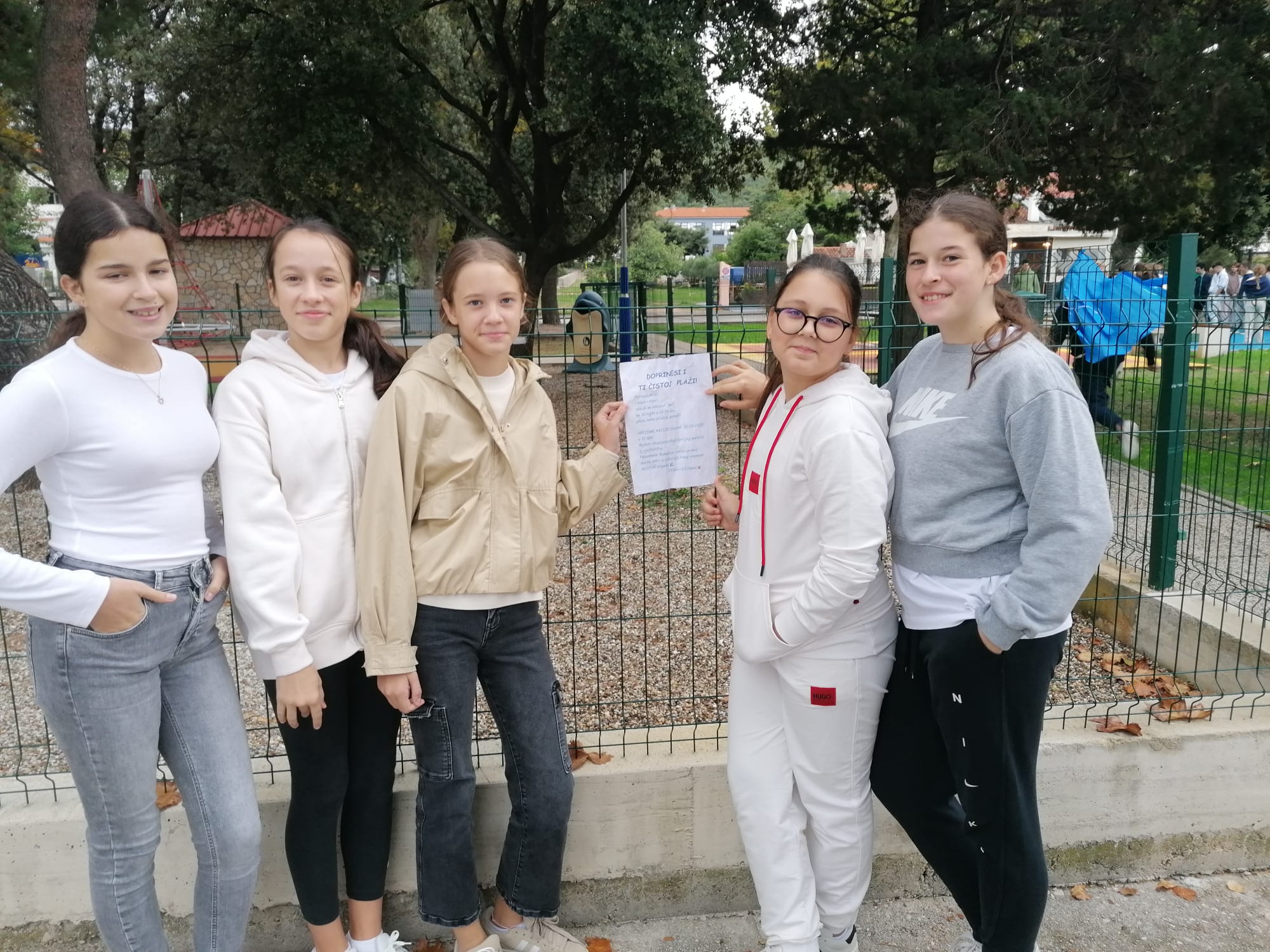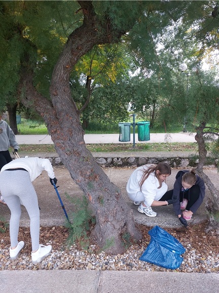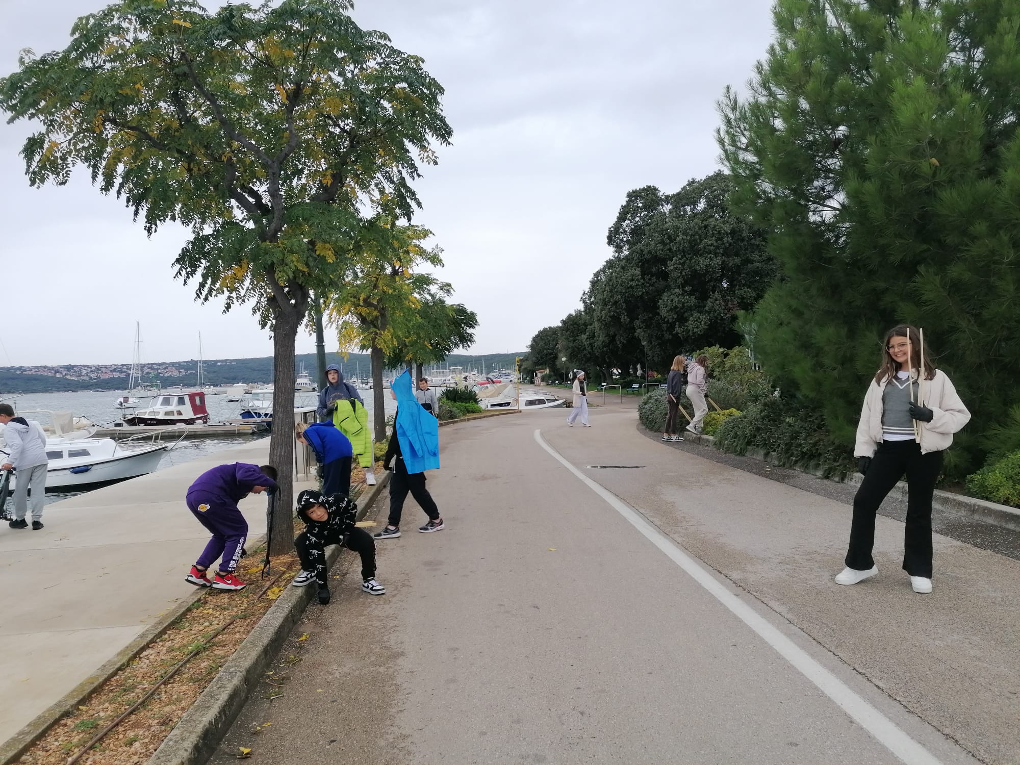 Ovim putem moramo zahvaliti gosp. Felixu Rossbachu iz Instituta koji nas je svojim kratkim predavanjem uveo u problematiku otpada koje najčešće završava u moru te motivirao za radnu akciju. Naoružani rukavicama, hvataljkama i vrećama u samo sat vremena prikupili smo najvećim dijelom plastični otpad i opuške.