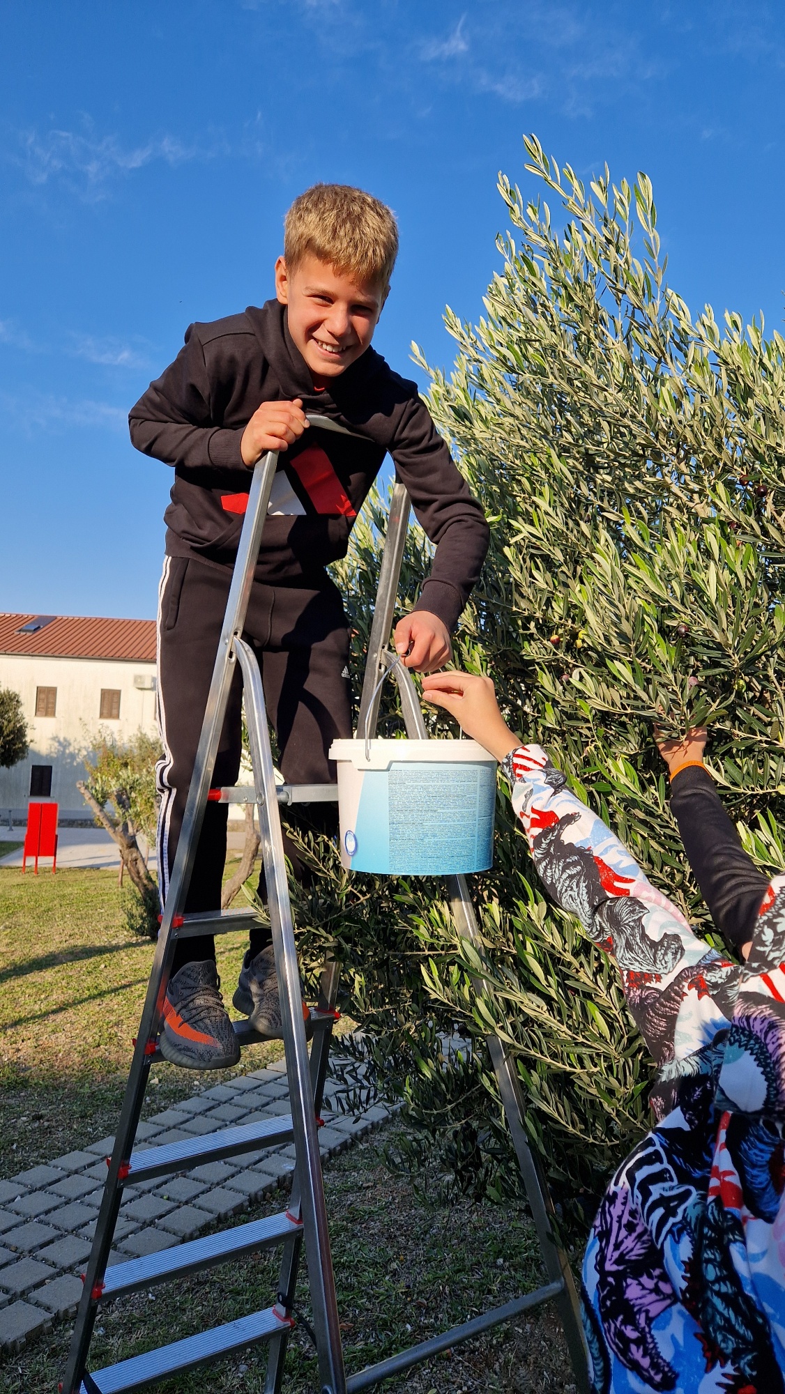 U veseloj atmosferi u vrlo kratkom roku obavili su svoj posao, a masline je na meljavu odnio ravnatelj Serđo osobno! Zahvaljujemo uljari Nono i g. Siniši Tudoru koji su bez naknade preradili naših 33 kg maslina u zlatne kapljice.