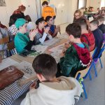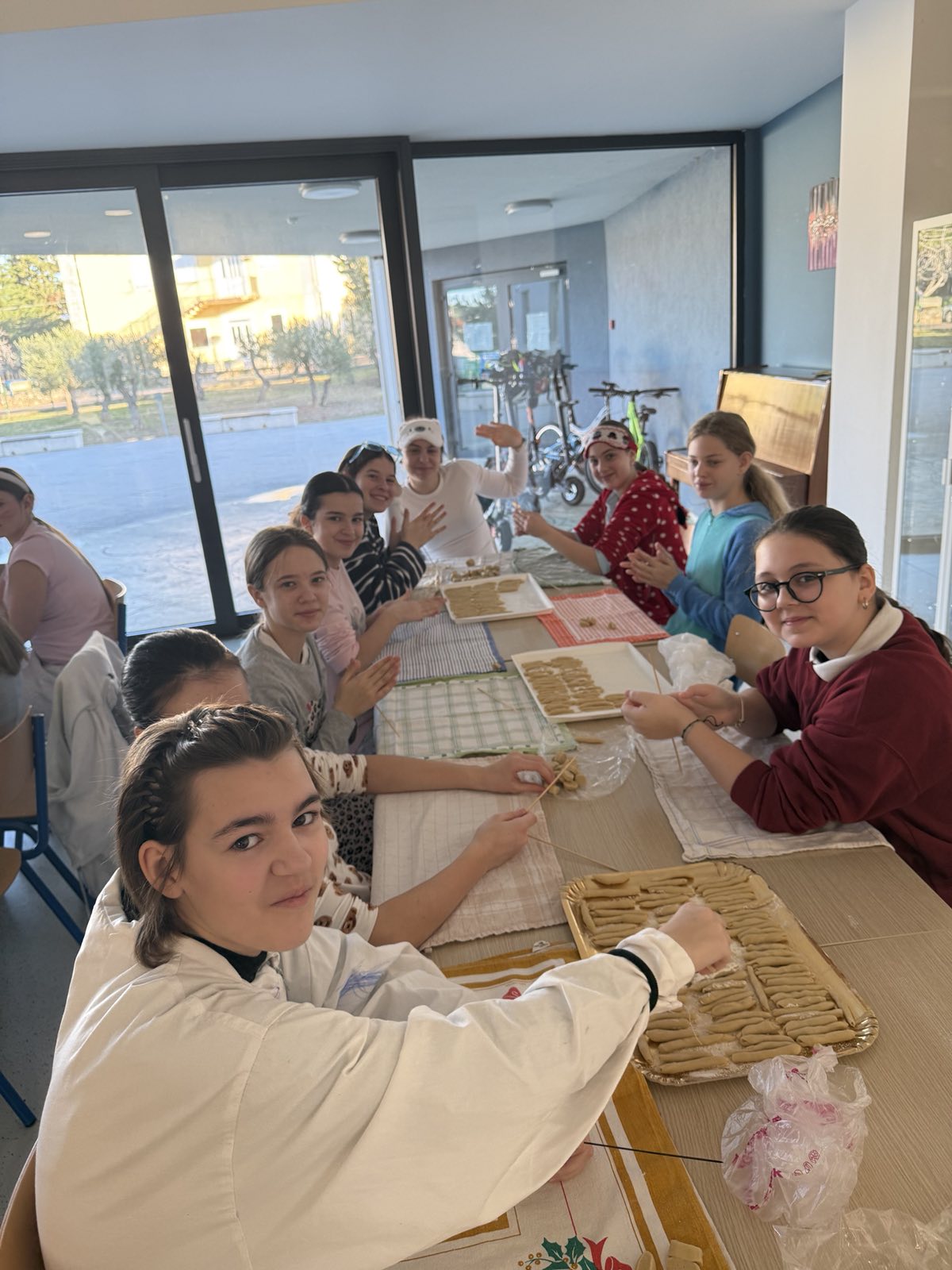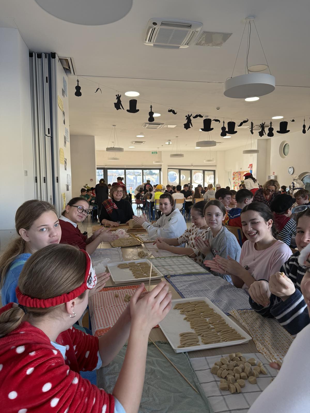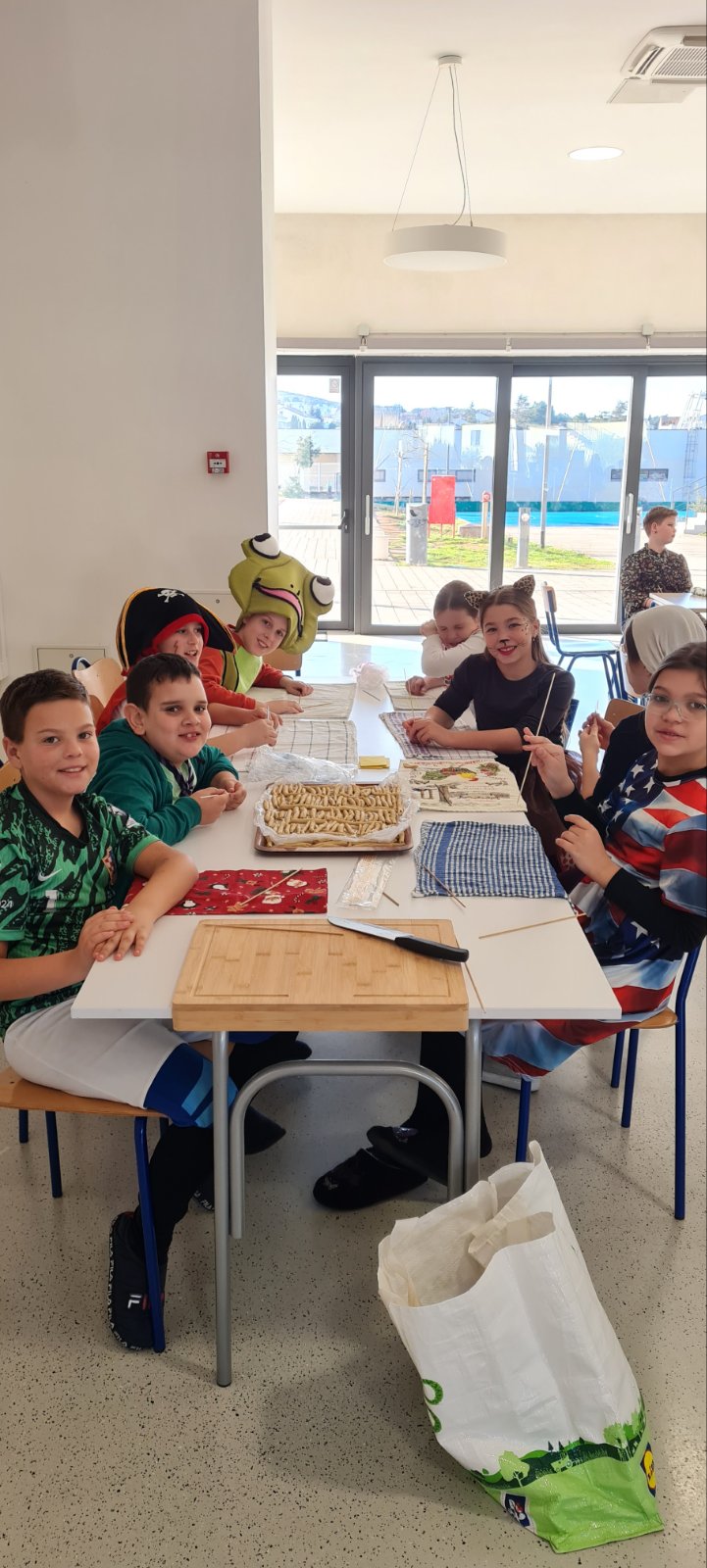 Posebno zanimljiva aktivnost bila je već tradicionalna izrada šurlica, tijekom koje su učenici imali priliku naučiti nešto više o tradiciji i okušati se u pripremi ove domaće otočke tjestenine. Nakon vrijednog rada uslijedila je zajednička marenda u veselom ozračju. Zahvaljujemo restoranu Marina što nam je i ove godine pripremila tijesto.