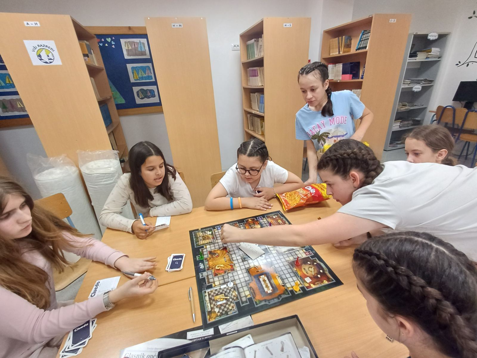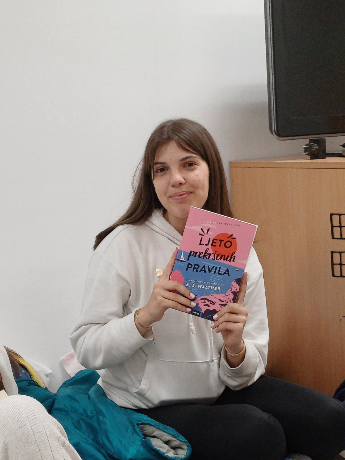 Za vrijeme službenog djela Noći knjige članovi su ostalima predstavili najdražu knjigu pročitanu ove nastavne godine. Program smo nastavili gledanjem filma, a zatim ponoć dočekali rezanjem ukusne voćne torte. Nakon čašćenja smo kalorije morali potrošiti igranjem lovice i skrivača po hodnicima škole. Druženje smo zaključili igranjem društvenih igara. Članovi su pokazali da im moždane vijuge odlično rade i u sitnim noćnim satima!