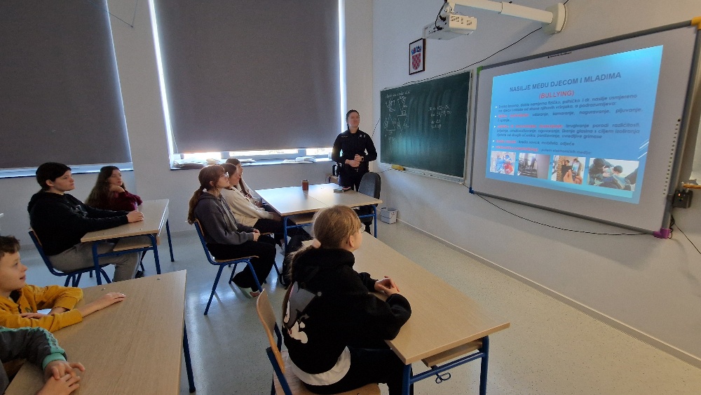 Navedeno predavanje održala je policijska službenica za prevenciju Irena Paula Ištok. Učenici su imali prilike čuti o vrstama nasilja, posljedicama nasilja te o sudionicima nasilja, s naglaskom na promatrače koji indirektno sudjeluju u procesu zlostavljanja te mogu imati veliki negativni utjecaj na osobu koja čini nasilje u vidu hrabrenja i podržavanja nasilja ili pak pozitivan utjecaj i pomoći osobi koja je žrtva nasilja. Naglasak je stavljen i na raširenost cyberbullyinga, odnosno nasilja putem interneta te moguće opasnosti i posljedice. Također, dani su savjeti što učiniti u slučaju nasilja.