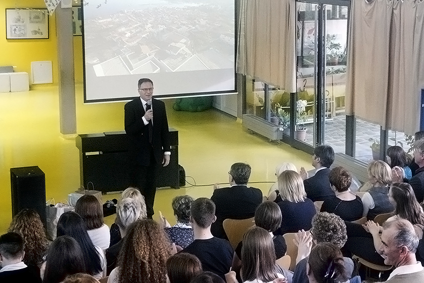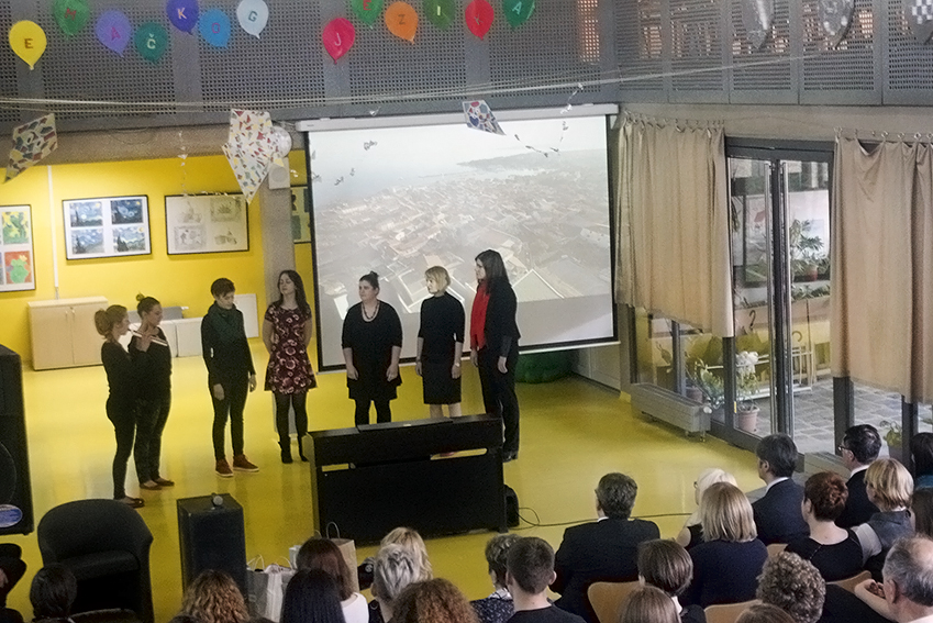 Svečana priredba trajala je od 18.00 do 19.00 sati, te su uzvanici imali prilike uživati u raznovrsnom kulturnom programu koji su za njih pripremili domaćini. Voditeljica programa bila je učiteljica Milica Žužić. Navedena učiteljica za uvodni dio programa izabrala je prikazati monodramu u izvedbi učenika šestog razreda Antonija Jurešića za koju je inspiracija bila poznati roman Christine Nostlinger: „Konrad ili dijete iz limenke“. Monodrama talentiranog Antonija Jurešića prethodno je bila izvedena na županijskom natjecanju iz Lidrana. Nakon kratke, ali nadasve inspirativne monodrame, program su obogatile članice vokalne skupine Bona forma. Podsjetimo na činjenicu da su dvije učiteljice naše škole njezine ponosne članice: Karmela Vajdoher Žilić (voditeljica), te Dana Adžić – Kapitanović. Nakon oduševljenja publike i uživanja u glazbenom izričaju uslijedio je formalniji dio večeri, te smo poslušali mnoge uvažene govornike navedenim redoslijedom: