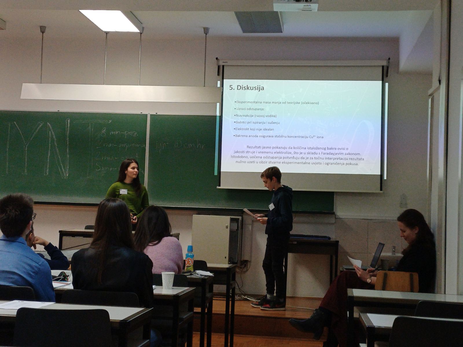Bartol Srakočić imao je još teži zadatak. Predstavio je rezultate svog istraživanja Isijavanje te oponirao srednjoškolki Elif Santur iz Labina na temu Izumi sam: Galvanizacija.