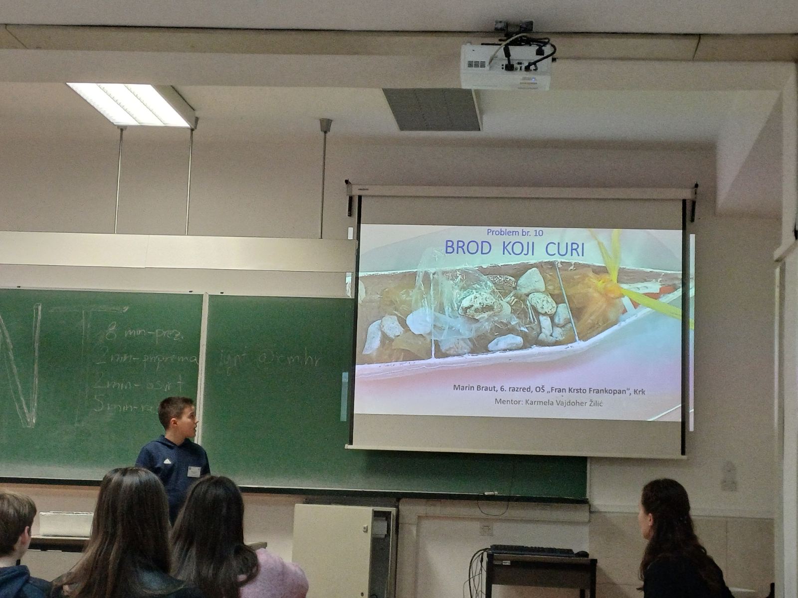 Marin Braut predstavio je rezultate svog istraživanja Brod koji curi te oponirao kolegi iz osmog razreda Nikoli Savičiću iz Rijeke na temu Izumi sam: Pauci.