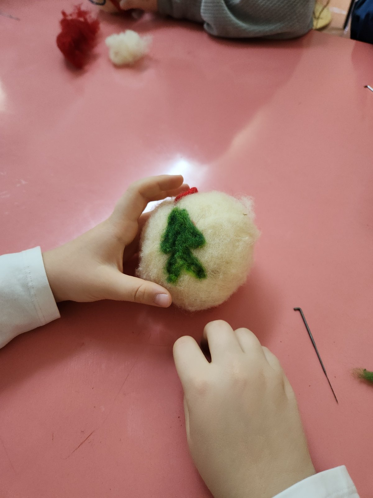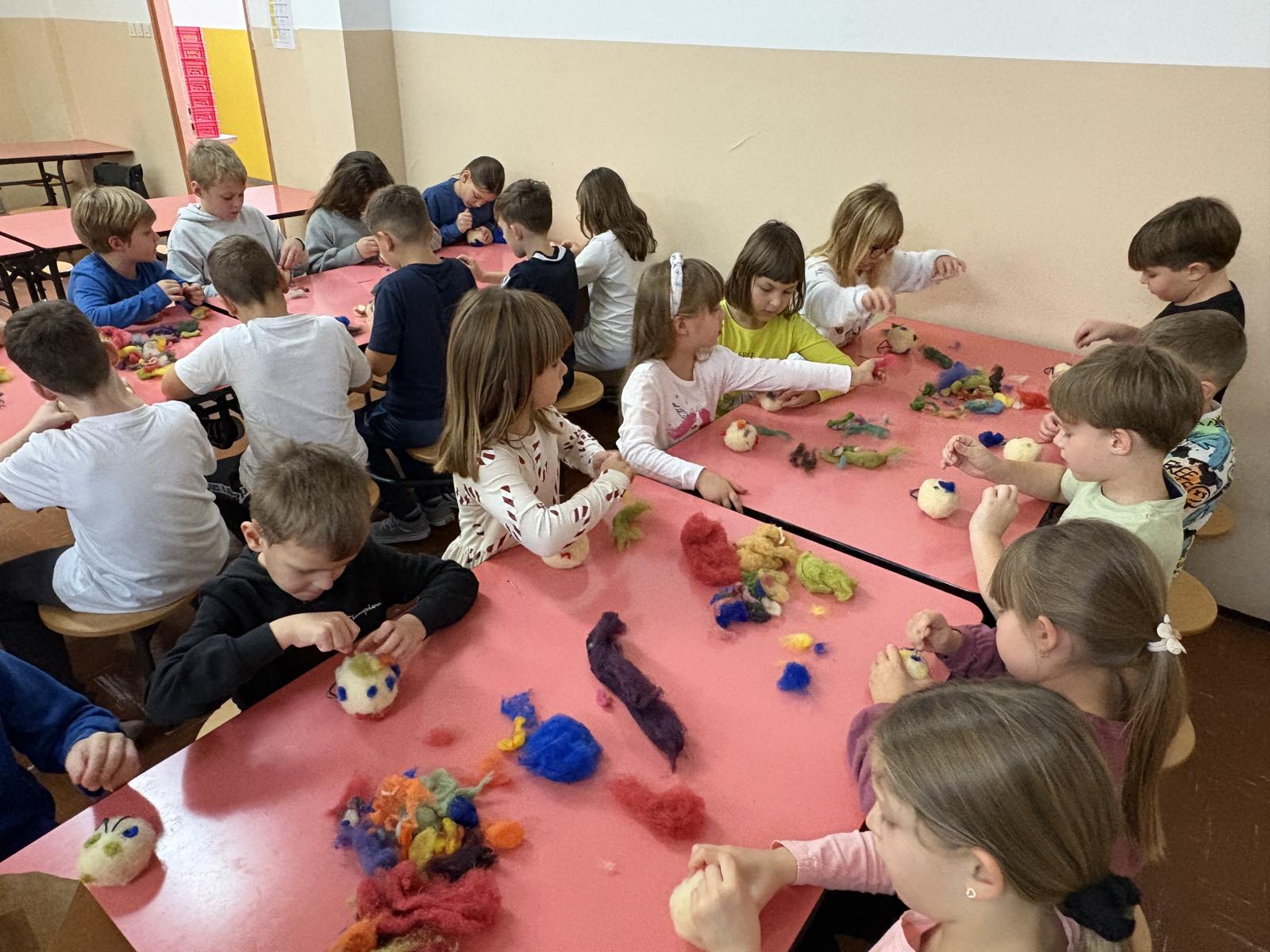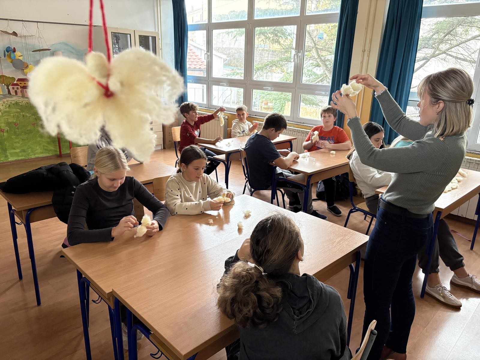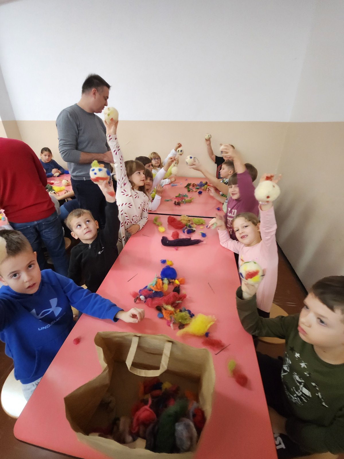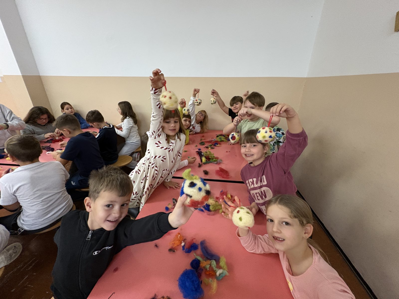 Učenici su imali priliku naučiti izrađivati kuglice za bor i anđeliće od vune. S velikim su veseljem izrađivali ukrase od prirodnih materijala uživajući u stvaranju zajedničkih božićnih dekoracija. Njihove učiteljice također su sudjelovale, pomažući učenicima s idejama i stvarajući ugodnu i poticajnu atmosferu.