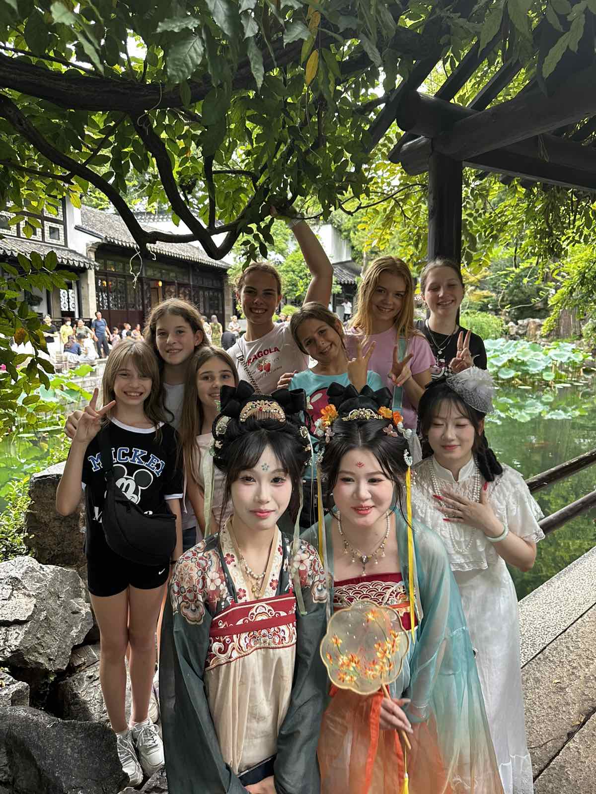 Nakon ovih 5 napornih dana nastupa nesnosnim vrućinama napokon smo spremile uniforme i krenule u istraživanje Šangaja i okolice. Cijeli dan provele smo na izletu u Disneyland i vrištale na adrenalinskim vožnjama da ispušemo sav stres od napornih nastupa. Obavile smo prvi shopping, a navečer smo spakirale kofere i sljedeća 3 dana provele u Suzhou. Suzhou (Su-đu) je grad smješten na donjem toku rijeke Jangce. Poznat je po svojim kamenim mostovima i prekrasnim vrtovima iz vremena Dinstije Sung. Klasični vrtovi Suzhoua upisani su na UNESC-ov popis mjesta svjetske baštine u Aziji. Posebno nas je oduševila Tigrova planina. Posjetile smo i vodeni grad Zhouzhuang, poznat i kao “Venecija istoka” gdje smo se provozale gondolama po bajkovitim kanalima. Suzhou je poznat po svili i nalazi se ruti “putevi svile” pa smo posjetile i tvornicu svile i naučile proces izrade svile od dudovog svilca do gotovog proizvoda. Naravno da su svilene marame bile najljepši poklon za mame, bake i tete.