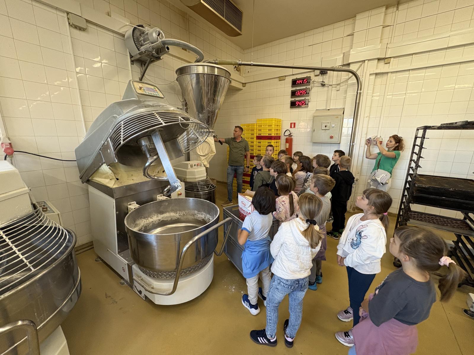 Posebno im je bilo zanimljivo upoznavanje s proizvodnjom proizvoda od brašna. Učenici su vidjeli velike miksere u kojima se mijesi tijesto, komoru u kojoj se tijesto diže, velike pećnice u kojima se peče kruh te su najviše uživali u prostoriji u kojoj se rade torte i kolači. Na kraju razgledavanja pekare počastili smo se slasnim krafnama.