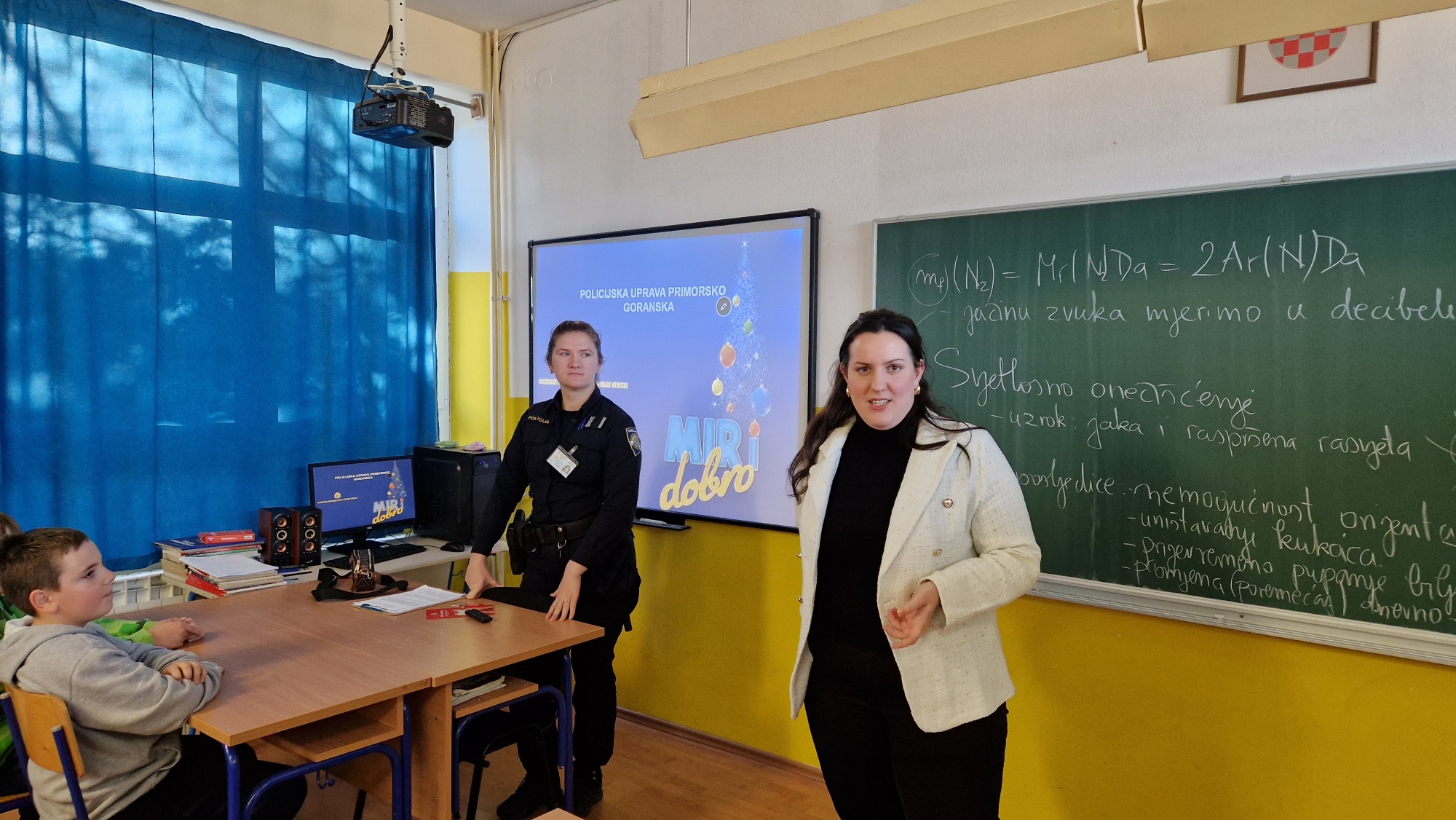 Dana 10. prosinca 2025. našu je školu posjetila policijska službenica Irena Paula Ištok iz Policijske postaje Krk kako bi za učenike održala predavanje u sklopu preventivne akcije „Mir i dobro“. „Mir i dobro” je preventivna akcija organizirana od strane Ministarstva unutarnjih poslova Republike Hrvatske i provodi se od 1993. godine. Cilj ove akcije je sprječavanje nezakonite uporabe oružja, pirotehničkih i drugih eksplozivnih sredstava u vrijeme božićnih i novogodišnjih blagdana te održavanje povoljnog stanja javnog reda i mira i opće sigurnosti građana.