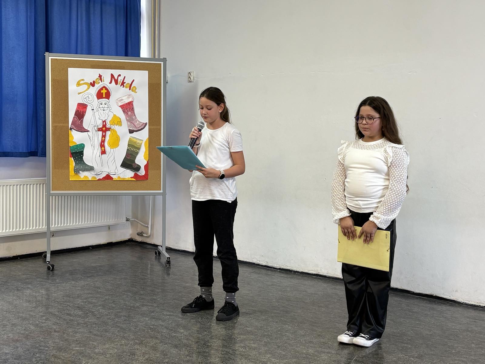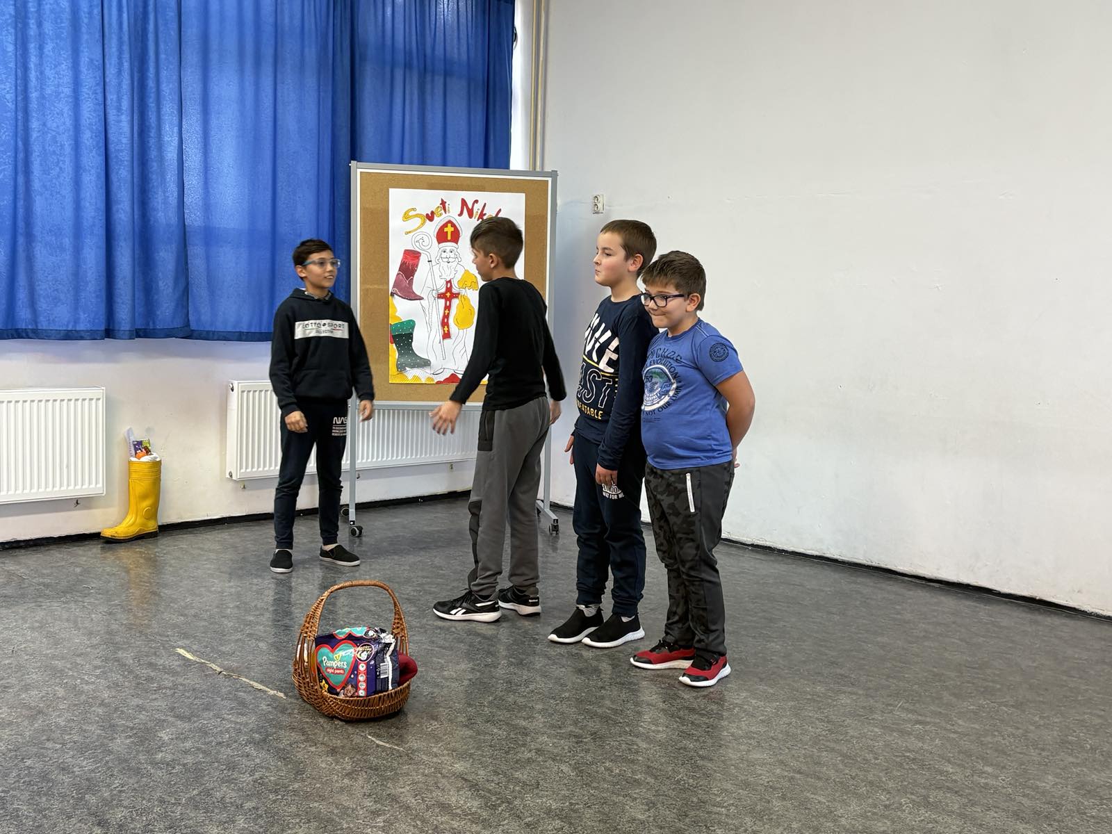 Voditelji programa bili su učenici četvrtog razreda Marta i Vito. Program je započela Martina, učenica 4 razreda, kratkim životopisom sv. Nikole, dok nam je legendu o sv. Nikoli ispričala Hana, također učenica 4. razreda. Učenici prvog razreda razveselili su nas otpjevavši nam prigodnu pjesmu „Dragi sv. Nikola“. Mlađi članovi dramske skupina nastupili su s igrokazom „Što bismo mogli pokloniti Nikoli“. Lijepe poruke sv. Nikoli uputili su i učenici 4. razreda u svom recitalu. Plesačice ritmičke skupine zaželjele su sv. Nikoli sretan imendan uz koreografiju koju su osmislile na pjesnu „Jinglle bell in the public“. Učenici trećeg razreda ispričali su nam zanimljivu priču o djevojčici Nikolini, a Izidora i Josip, učenici 4. razreda, priredili su sv. Nikoli recitale „Sveti nikola i Krampus“ i „Da sam ja sv. Nikola“.