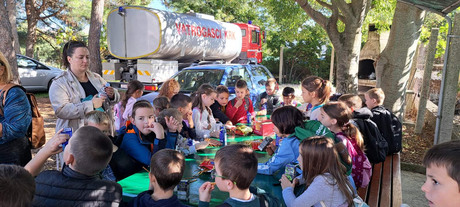Po dolasku na kopno, uputili smo se autobusom do grada Krka. Posjetili smo JVP Grada Krka gdje smo naviše uživali u razgledavanju vatrogasnih vozila, isprobavanju nekih alata te vatrogasne opreme. Nakon kratke okrjepe koju su nam pripremili vatrogasci, krenuli smo u šetnju ulicama grada Krka.