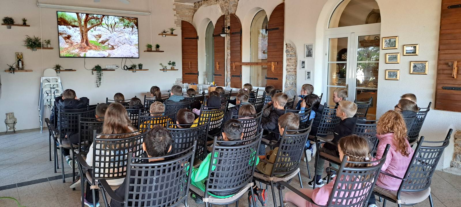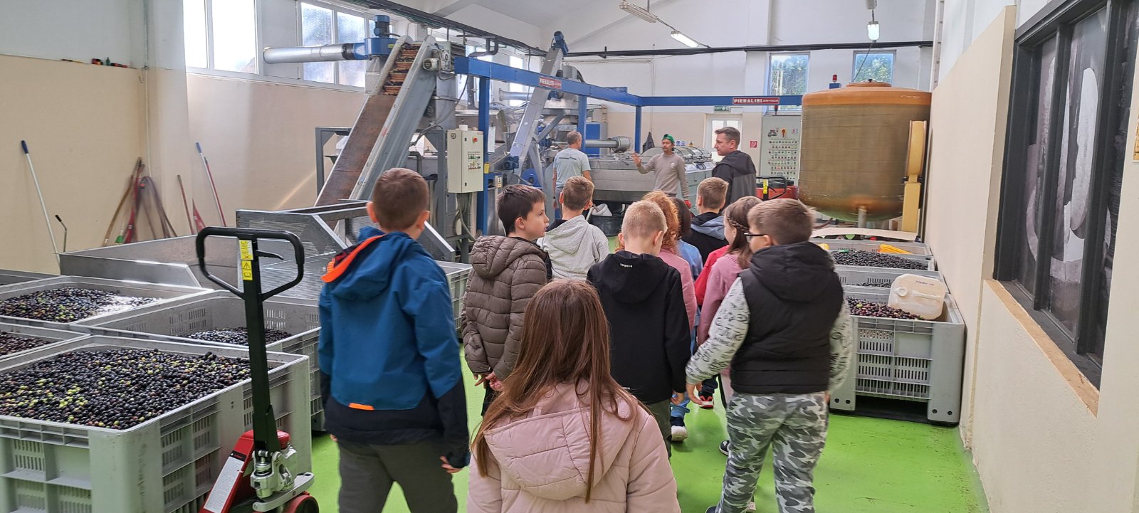 Prvo stajalište nam je bilo u Uljari Punat. Pogledali smo poučni film o proizvodnji maslinovog ulja. Prošetali smo maslinikom i upoznali razne sorte maslina te vidjeli stari toš koji je je pokretao magarac. U samoj uljari vidjeli smo proces kako se iz maslina dobiva ulje.
