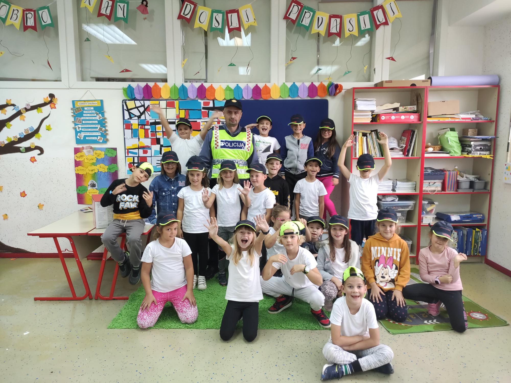U petak je našim prvašićima stigao još jedan gost – djelatnik MUP-a Krk, koji je s djecom popričao o sigurnosti u prometu i dao im korisne savjete. Bio je strpljiv i odgovorio na brojna pitanja prvaša. Na odlasku je svima poklonio šiltericu i fotografirao se s djecom.