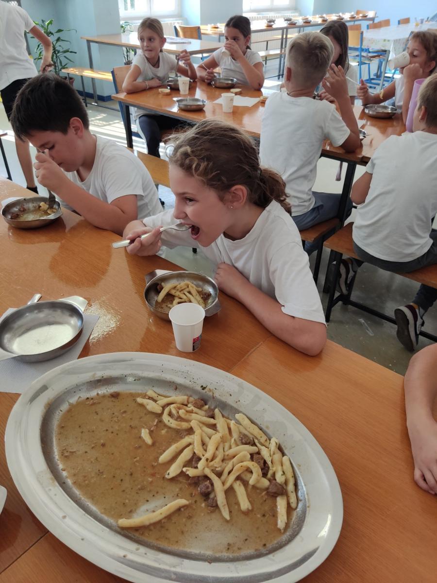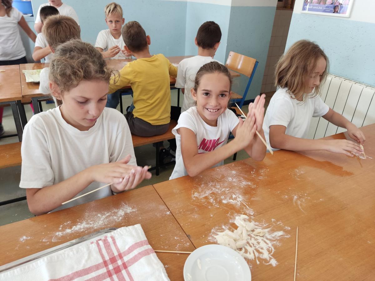 Povodom Dana kruha i zahvalnosti za plodove zemlje, učenici 3. razreda naše škole okušali su se u izradi šurlica. Ta tradicijska tjestenina većini je omiljeno je jelo pa su radošću prihvatili izazov. Bili su jako uspješni u tome! Zahvaljujući kuharici Anamariji, koja je pripremila gulaš, fino su se i najeli. Volimo ovakve projekte!