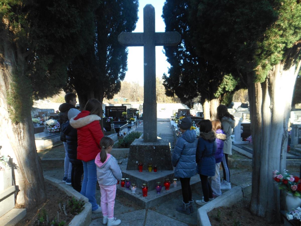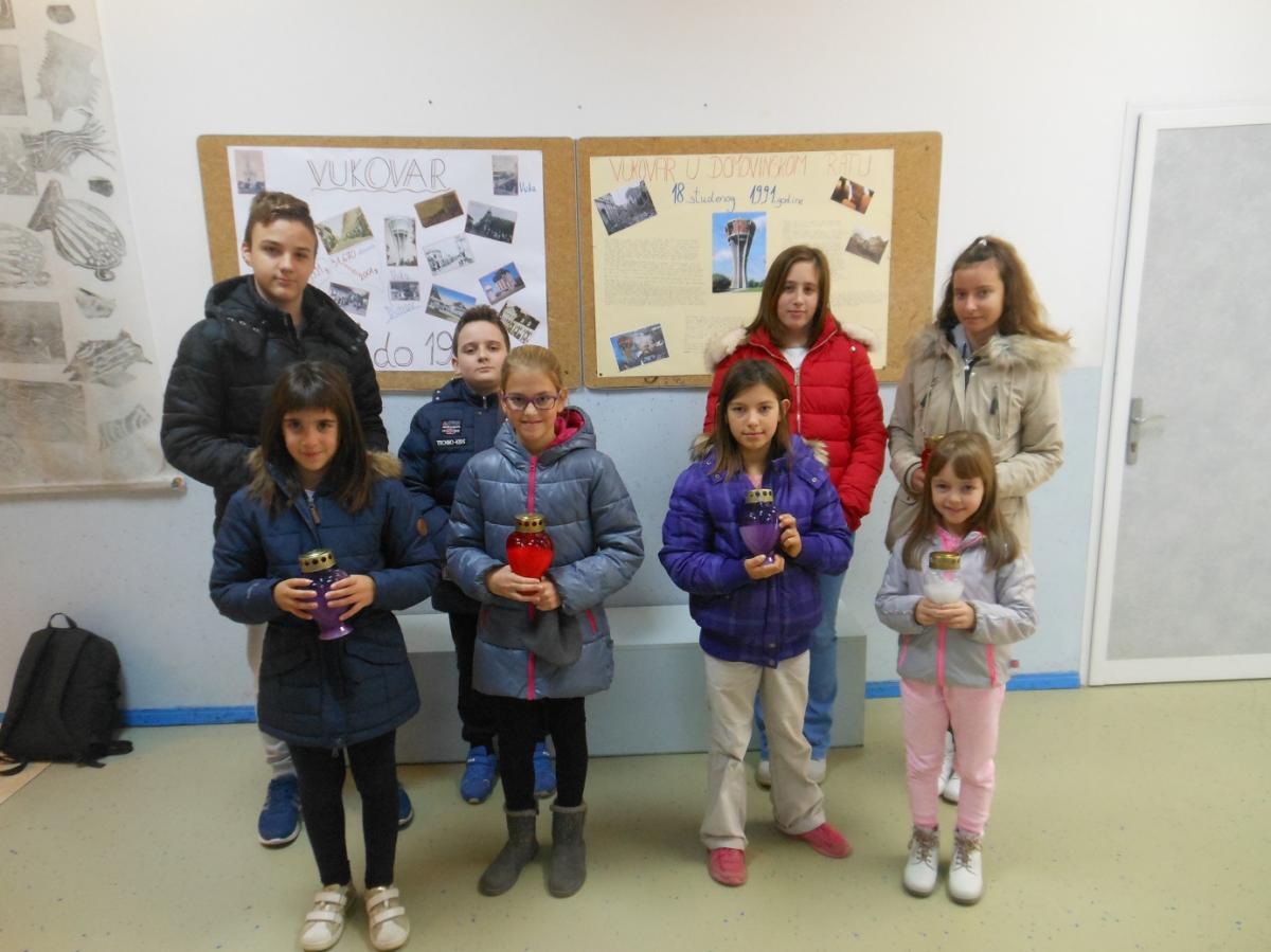 Kao i prošle, tako se i ove godine naša škola na simboličan način uključila u obilježavanje vukovarske i škabrnjačke žrtve. Zajedno s učiteljem povijesti Tvrtkom Božićem predstavnici svih razreda (Mare Toić, 1. razred; Ema Kosić, 2. razred; Leana Rošin, 3. razred; Nika Depikolozvane, 4. razred; Dominik Nenadić, 5. razred; Ana- Marija Sarić, 6. razred; Dana Žužić, 7. razred i Dominik Veselčić, 8. razred) zapalili su svijeće kod središnjeg križa na groblju u Kosiću, te u svoje osobno kao i u ime svih učenika i djelatnika naše škole odali počast svim žrtvama Domovinskog rata.