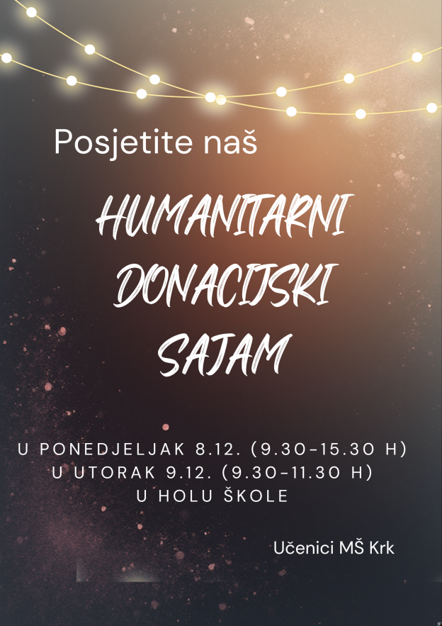 pozivamo vas na Humanitarni donacijski sajam koji će se održati sljedeći tjedan u holu naše škole.