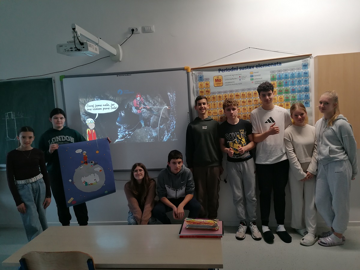Ambasadorica Eva na vrlo je jasan i konkretan način educirala učenike o velikom problemu ilegalnog odlaganja otpada u špilje i jame što rezultira zagađenošću pitkih podzemnih voda, a znamo da upravo te vode čine 70% zaliha pitke vode Hrvatske. Također smo saznali da su naše krške jame i špilje dom za 40% hrvatskih endemskih životinja, i upravo zato smo ih dužni štititi i čuvati.