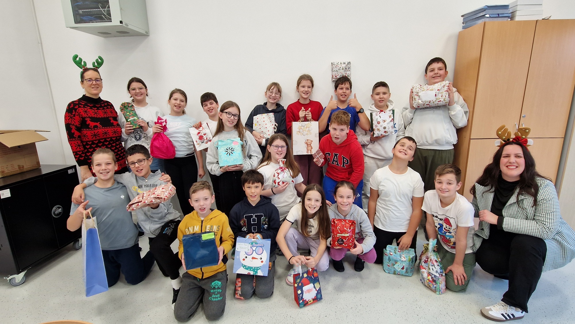 Kao i prošle godine, međusobno su se darivali zasebno učenici nižih razreda i zasebno učenici viših razreda. Nakon što su učenici prethodno izvukli imena, posljednjih nekoliko dana u školu su donosili poklone. Učitelji su sve poklone marljivo sortirali i pripremili kako bi u petak 19. prosinca 2025. uslijedio najiščekivaniji dio – podjela poklona!